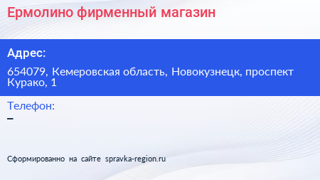 Ермолино, фирменный магазин по адресу 654079, Кемеровская область, Новокузнецк, проспект Курако, 1 в дальнейшем Организация, размещена в следующих категориях: