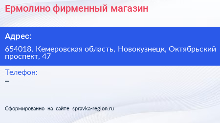 Ермолино, фирменный магазин по адресу 654018, Кемеровская область, Новокузнецк, Октябрьский проспект, 47 в дальнейшем Организация, размещена в следующих категориях: