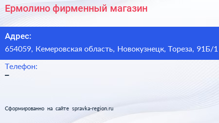 Ермолино, фирменный магазин по адресу 654059, Кемеровская область, Новокузнецк, Тореза, 91Б/1 в дальнейшем Организация, размещена в следующих категориях: