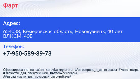 Фарт по адресу 654038, Кемеровская область, Новокузнецк, 40 лет ВЛКСМ, 40Б в дальнейшем Организация, размещена в следующих категориях: