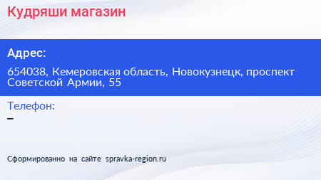 Кудряши, магазин по адресу 654038, Кемеровская область, Новокузнецк, проспект Советской Армии, 55 в дальнейшем Организация, размещена в следующих категориях: