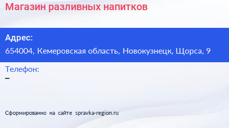 Магазин разливных напитков по адресу 654004, Кемеровская область, Новокузнецк, Щорса, 9 в дальнейшем Организация, размещена в следующих категориях: