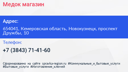 Медок, магазин по адресу 654041, Кемеровская область, Новокузнецк, проспект Дружбы, 10 в дальнейшем Организация, размещена в следующих категориях: