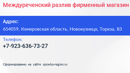 Междуреченский разлив, фирменный магазин по адресу 654059, Кемеровская область, Новокузнецк, Тореза, 83 в дальнейшем Организация, размещена в следующих категориях: