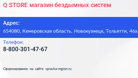 Q STORE, магазин бездымных систем по адресу 654080, Кемеровская область, Новокузнецк, Тольятти, 46а в дальнейшем Организация, размещена в следующих категориях: