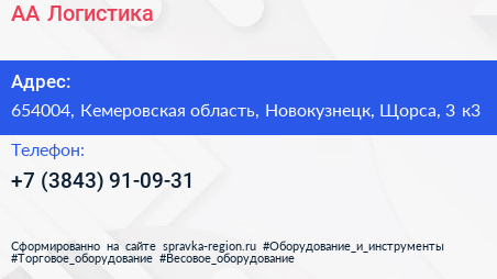 АА Логистика по адресу 654004, Кемеровская область, Новокузнецк, Щорса, 3 к3 в дальнейшем Организация, размещена в следующих категориях: