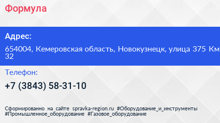 Формула по адресу 654004, Кемеровская область, Новокузнецк, улица 375 Км, 32 в дальнейшем Организация, размещена в следующих категориях: