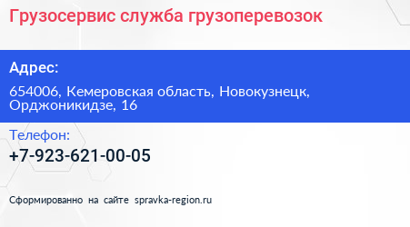 Грузосервис, служба грузоперевозок по адресу 654006, Кемеровская область, Новокузнецк, Орджоникидзе, 16 в дальнейшем Организация, размещена в следующих категориях: