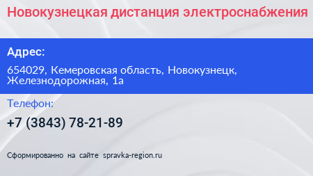 Новокузнецкая дистанция электроснабжения по адресу 654029, Кемеровская область, Новокузнецк, Железнодорожная, 1а в дальнейшем Организация, размещена в следующих категориях: