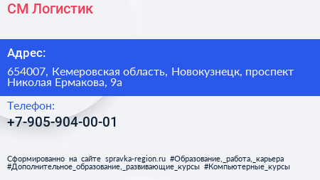 СМ Логистик по адресу 654007, Кемеровская область, Новокузнецк, проспект Николая Ермакова, 9а в дальнейшем Организация, размещена в следующих категориях: