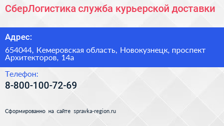 СберЛогистика, служба курьерской доставки по адресу 654044, Кемеровская область, Новокузнецк, проспект Архитекторов, 14а в дальнейшем Организация, размещена в следующих категориях: