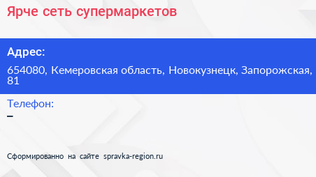 Ярче!, сеть супермаркетов по адресу 654080, Кемеровская область, Новокузнецк, Запорожская, 81 в дальнейшем Организация, размещена в следующих категориях: