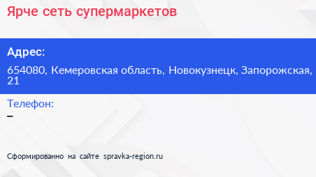Ярче!, сеть супермаркетов по адресу 654080, Кемеровская область, Новокузнецк, Запорожская, 21 в дальнейшем Организация, размещена в следующих категориях: