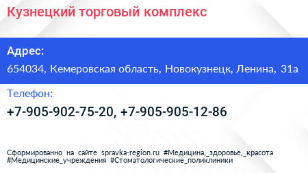 Кузнецкий, торговый комплекс по адресу 654034, Кемеровская область, Новокузнецк, Ленина, 31а в дальнейшем Организация, размещена в следующих категориях: