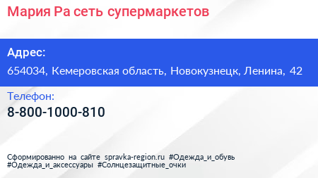 Мария-Ра, сеть супермаркетов по адресу 654034, Кемеровская область, Новокузнецк, Ленина, 42 в дальнейшем Организация, размещена в следующих категориях: