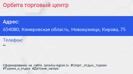 Орбита, торговый центр по адресу 654080, Кемеровская область, Новокузнецк, Кирова, 75 в дальнейшем Организация, размещена в следующих категориях: