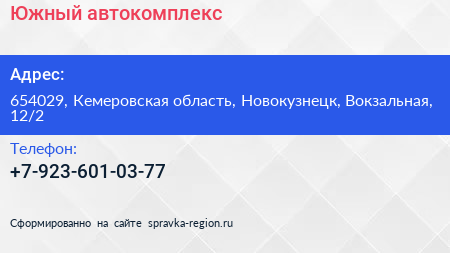 Южный, автокомплекс по адресу 654029, Кемеровская область, Новокузнецк, Вокзальная, 12/2 в дальнейшем Организация, размещена в следующих категориях: