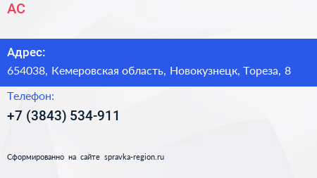 АС по адресу 654038, Кемеровская область, Новокузнецк, Тореза, 8 в дальнейшем Организация, размещена в следующих категориях: