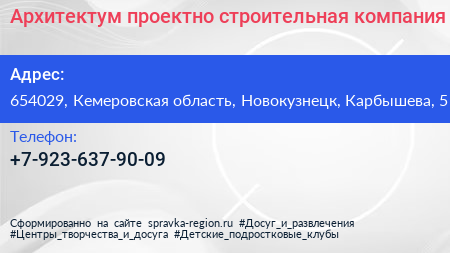 Архитектум, проектно-строительная компания по адресу 654029, Кемеровская область, Новокузнецк, Карбышева, 5 в дальнейшем Организация, размещена в следующих категориях: