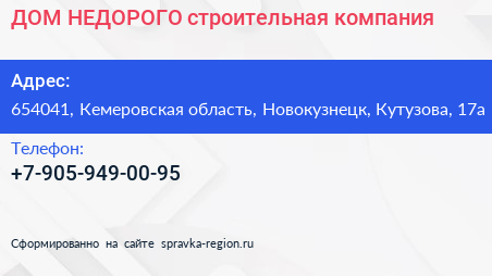 ДОМ НЕДОРОГО, строительная компания по адресу 654041, Кемеровская область, Новокузнецк, Кутузова, 17а в дальнейшем Организация, размещена в следующих категориях: