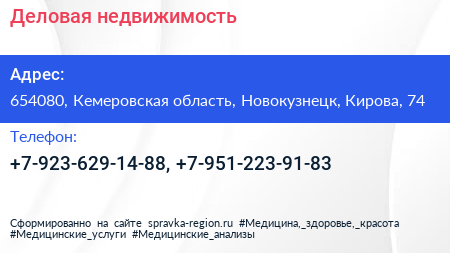 Деловая недвижимость по адресу 654080, Кемеровская область, Новокузнецк, Кирова, 74 в дальнейшем Организация, размещена в следующих категориях: