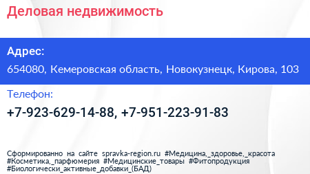 Деловая недвижимость по адресу 654080, Кемеровская область, Новокузнецк, Кирова, 103 в дальнейшем Организация, размещена в следующих категориях: