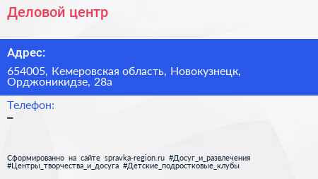 Деловой центр по адресу 654005, Кемеровская область, Новокузнецк, Орджоникидзе, 28а в дальнейшем Организация, размещена в следующих категориях:
