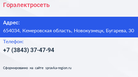 Горэлектросеть по адресу 654034, Кемеровская область, Новокузнецк, Бугарева, 30 в дальнейшем Организация, размещена в следующих категориях: