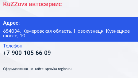 KuZZovs, автосервис по адресу 654034, Кемеровская область, Новокузнецк, Кузнецкое шоссе, 10 в дальнейшем Организация, размещена в следующих категориях: