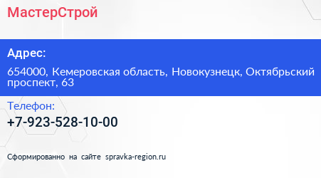 МастерСтрой по адресу 654000, Кемеровская область, Новокузнецк, Октябрьский проспект, 63 в дальнейшем Организация, размещена в следующих категориях: