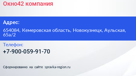 Окно42, компания по адресу 654084, Кемеровская область, Новокузнецк, Аульская, 65а/2 в дальнейшем Организация, размещена в следующих категориях: