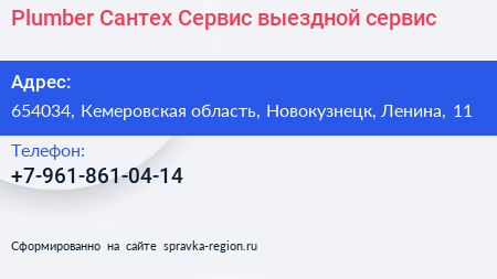 Plumber Сантех Сервис, выездной сервис по адресу 654034, Кемеровская область, Новокузнецк, Ленина, 11 в дальнейшем Организация, размещена в следующих категориях:
