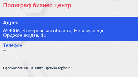 Полиграф, бизнес-центр по адресу 654006, Кемеровская область, Новокузнецк, Орджоникидзе, 11 в дальнейшем Организация, размещена в следующих категориях: