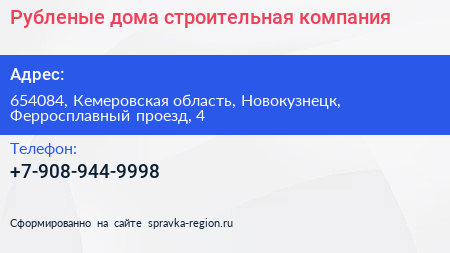 Рубленые дома, строительная компания по адресу 654084, Кемеровская область, Новокузнецк, Ферросплавный проезд, 4 в дальнейшем Организация, размещена в следующих категориях: