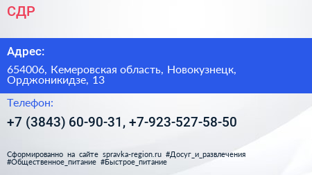 СДР по адресу 654006, Кемеровская область, Новокузнецк, Орджоникидзе, 13 в дальнейшем Организация, размещена в следующих категориях: