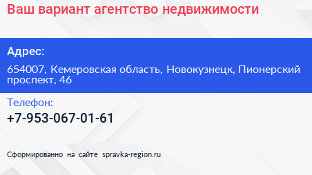 Ваш вариант, агентство недвижимости по адресу 654007, Кемеровская область, Новокузнецк, Пионерский проспект, 46 в дальнейшем Организация, размещена в следующих категориях: