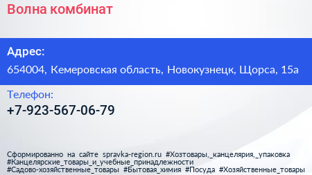 Волна, комбинат по адресу 654004, Кемеровская область, Новокузнецк, Щорса, 15а в дальнейшем Организация, размещена в следующих категориях: