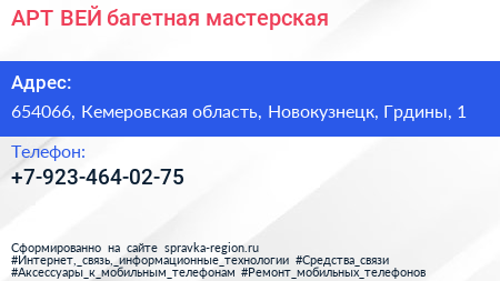 АРТ ВЕЙ, багетная мастерская по адресу 654066, Кемеровская область, Новокузнецк, Грдины, 1 в дальнейшем Организация, размещена в следующих категориях: