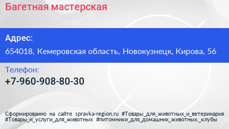 Багетная мастерская по адресу 654018, Кемеровская область, Новокузнецк, Кирова, 56 в дальнейшем Организация, размещена в следующих категориях: