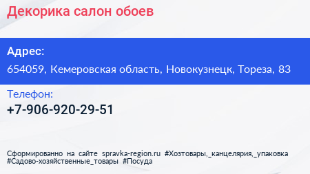 Декорика, салон обоев по адресу 654059, Кемеровская область, Новокузнецк, Тореза, 83 в дальнейшем Организация, размещена в следующих категориях: