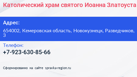 Католический храм святого Иоанна Златоуста по адресу 654002, Кемеровская область, Новокузнецк, Разведчиков, 3 в дальнейшем Организация, размещена в следующих категориях: