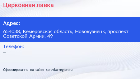 Церковная лавка по адресу 654038, Кемеровская область, Новокузнецк, проспект Советской Армии, 49 в дальнейшем Организация, размещена в следующих категориях: