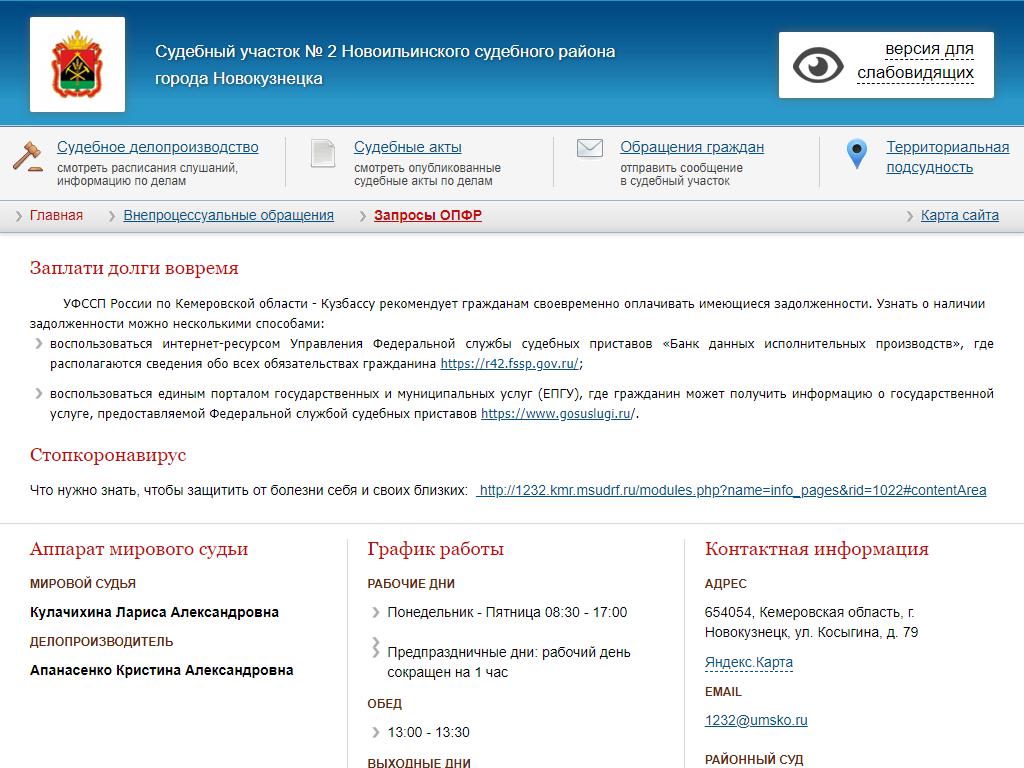 Мировые судьи Новоильинского района по адресу 654054, Кемеровская область, Новокузнецк, Косыгина, 79 в дальнейшем Организация, размещена в следующих категориях:
