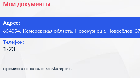 Мои документы по адресу 654054, Кемеровская область, Новокузнецк, Новосёлов, 37 в дальнейшем Организация, размещена в следующих категориях: