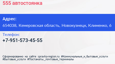 555, автостоянка по адресу 654038, Кемеровская область, Новокузнецк, Клименко, 6 в дальнейшем Организация, размещена в следующих категориях: