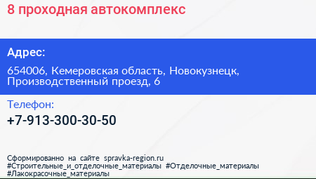 8 проходная, автокомплекс по адресу 654006, Кемеровская область, Новокузнецк, Производственный проезд, 6 в дальнейшем Организация, размещена в следующих категориях: