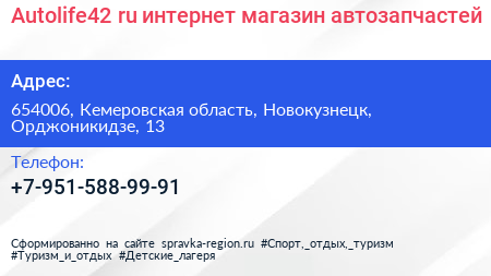 Autolife42.ru, интернет-магазин автозапчастей по адресу 654006, Кемеровская область, Новокузнецк, Орджоникидзе, 13 в дальнейшем Организация, размещена в следующих категориях: