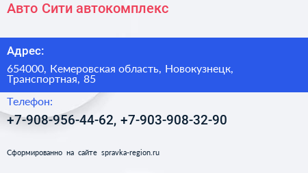 Авто Сити, автокомплекс по адресу 654000, Кемеровская область, Новокузнецк, Транспортная, 85 в дальнейшем Организация, размещена в следующих категориях: