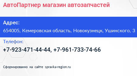 АвтоПартнер, магазин автозапчастей по адресу 654005, Кемеровская область, Новокузнецк, Ушинского, 3 в дальнейшем Организация, размещена в следующих категориях: