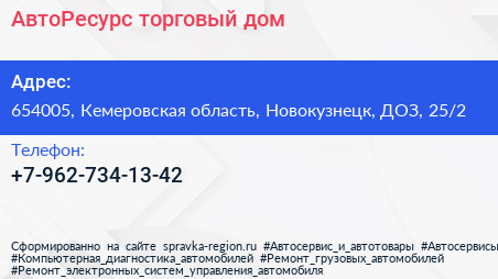 АвтоРесурс, торговый дом по адресу 654005, Кемеровская область, Новокузнецк, ДОЗ, 25/2 в дальнейшем Организация, размещена в следующих категориях: